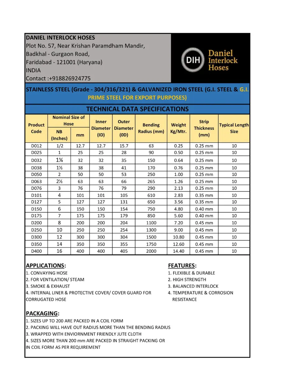 Double Interlock Flexible Hose is a highly flexible, durable hose made from helically wound metal strips that are folded and locked together. The interlocked construction provides exceptional mechanical strength and resistance to crushing, abrasion, and high temperatures.